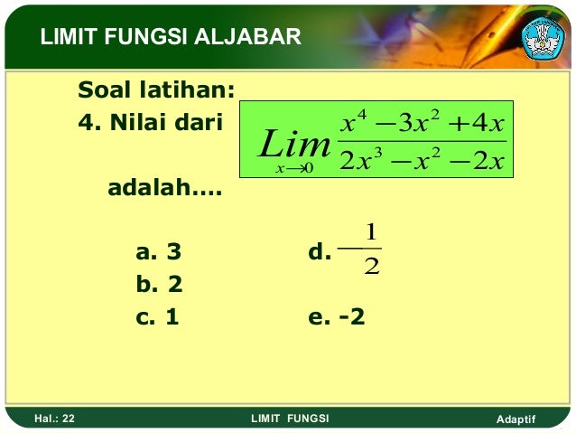 Limit Fungsi - Limit adalah sebuah konsep di dalam matematika, yang dimana sesuatu yang disebut dengan hampir atau. Menentukan limit dengan cara diatas tidaklah efisien. Cara Mengerjakan Limit Fungsi yang Tidak Terdefinisi.