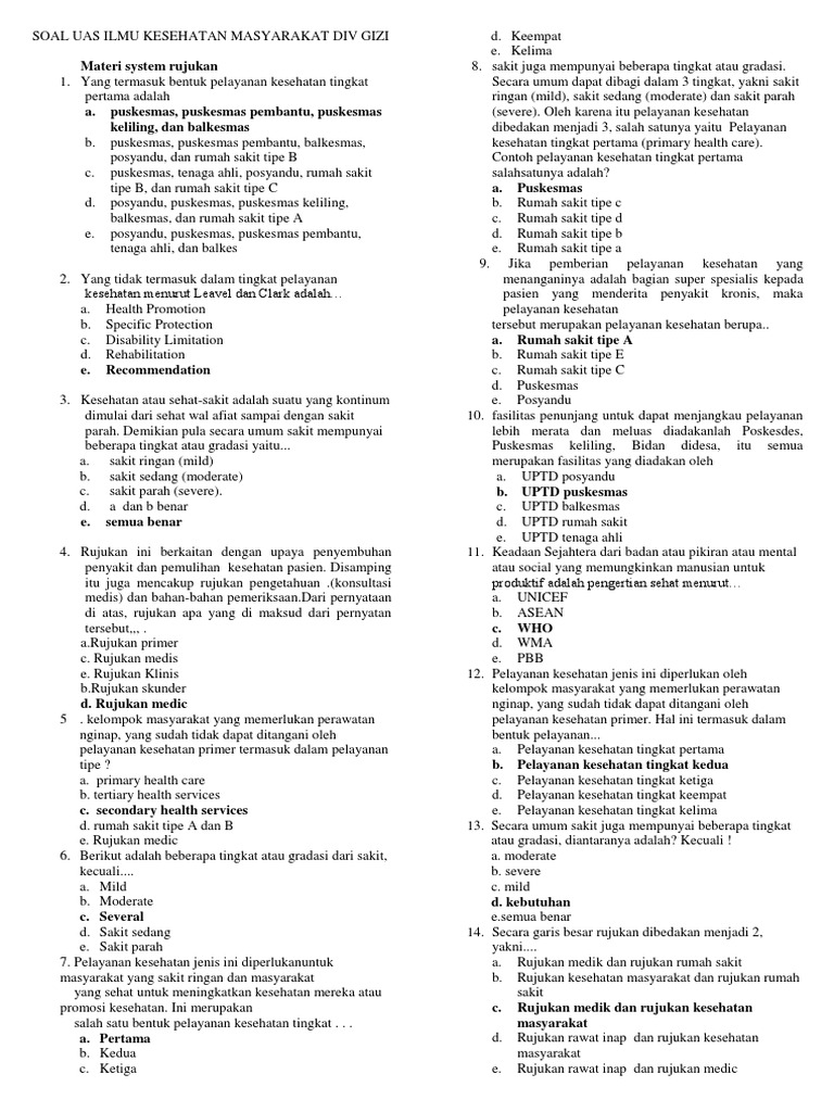 Soal-soal ini meliputi pokok bahasan: Konsep Dasar Ilmu Gizi Konsep Gizi.