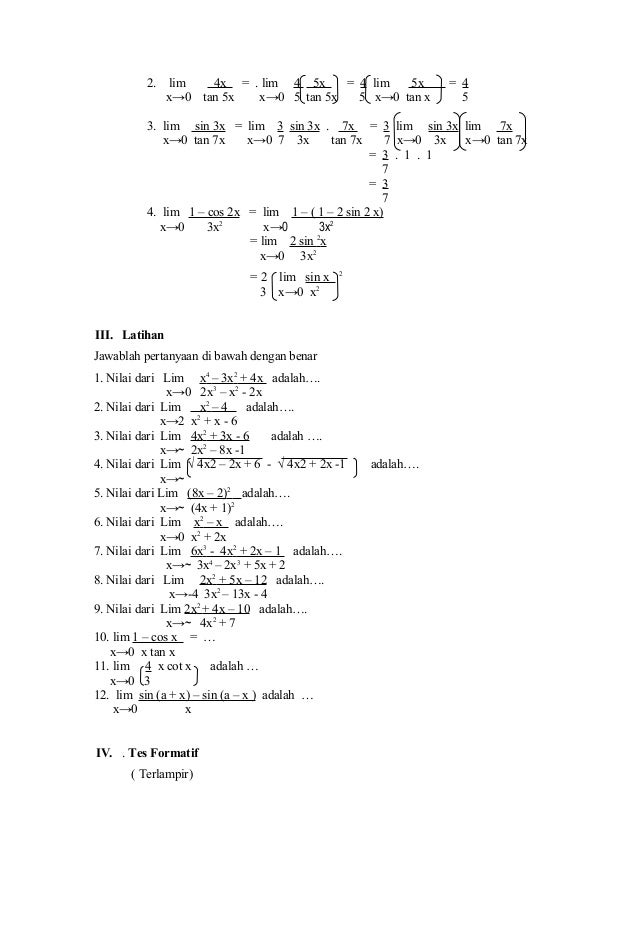 Contoh Soal Lim Tan. Makalah materi download unduh contoh soal limit matematika beserta pembahasan dan jawabannya lengkap terbaru Pada contoh diatas, limit dari f(x) apabila x mendekati c, yaitu L. COM Diperbolehkan memperbanyak dengan mencantumkan sumbernya.