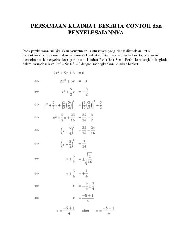 Persamaan kuadrat beserta contoh dan penyelesaiannya 1