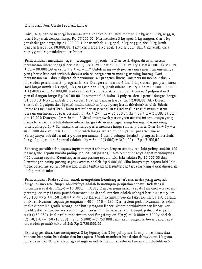 Contoh Soal Cerita Program Linear Dan Penyelesaiannya